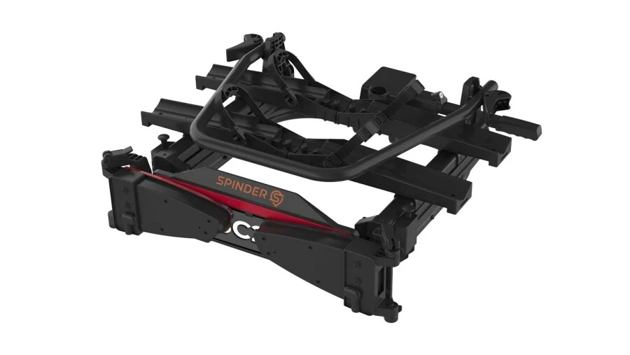 Nooit meer uw zware fietsen tillen met de oprijgoot van Spinder! U klikt hem in de fietsendrager en u rijdt zo uw fietsen erop.