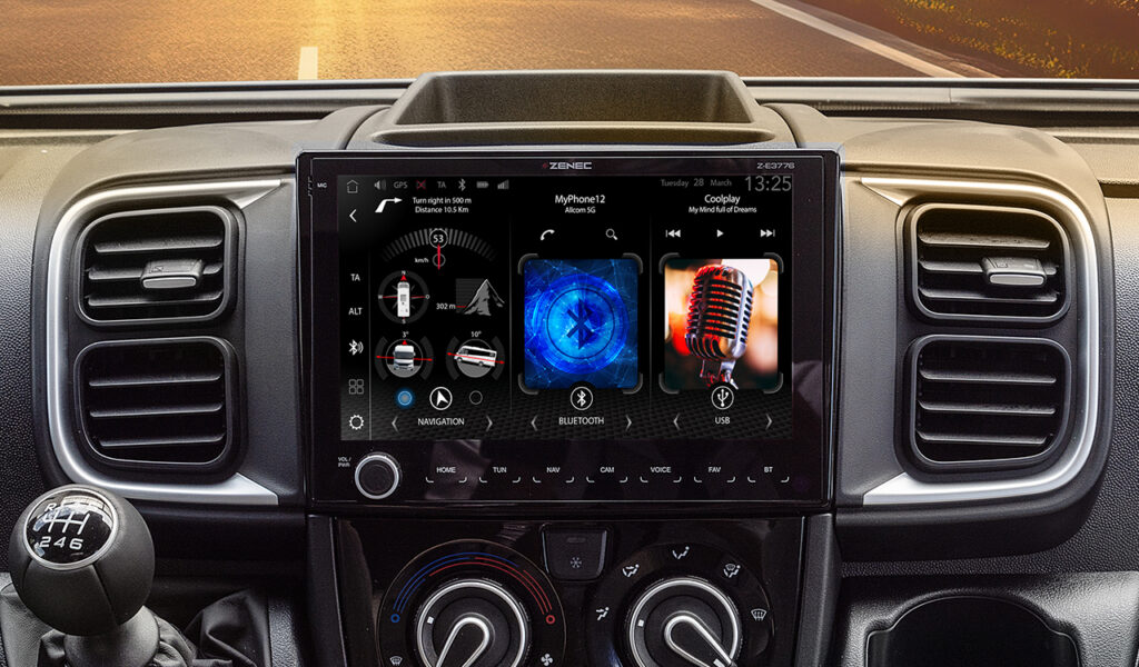 Radio met DAB+ en 9 inch LCD touchscreen scherm welke voorzien van o.a. Bluetooth, USB aansluiting en tevens een achteruitrijdcamera welke geïntegreerd is in het derde remlicht.