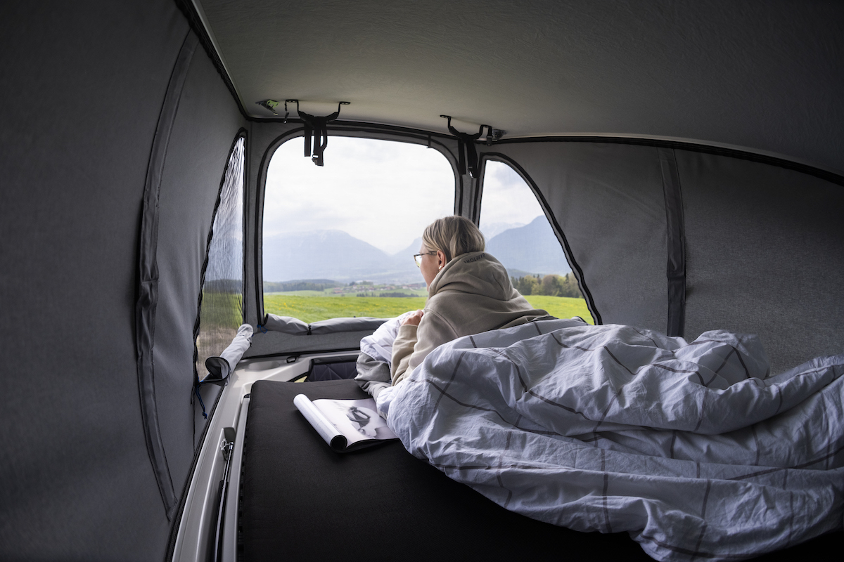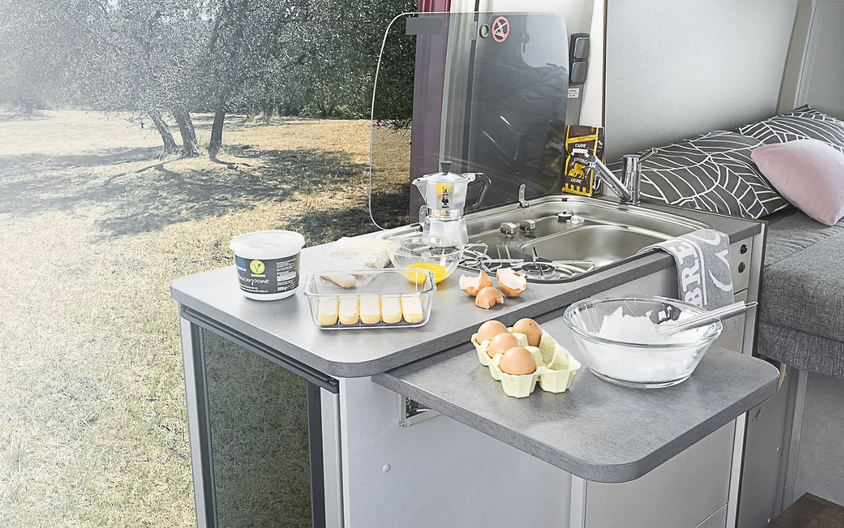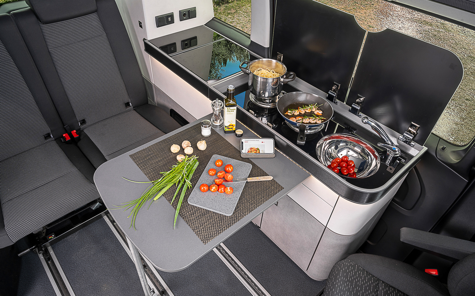 De CAMPSTER: zo divers als het leven zelf, maar vooral afgestemd op de grote wijde wereld. Het verwent alle avontuurlijke mensen met meubels, een eigen leefruimte en standaard een uitneembare keuken* en een slaapbank achterin. De Campster heeft een lengte van 4,95 meter en een breedte van 1,93 meter.