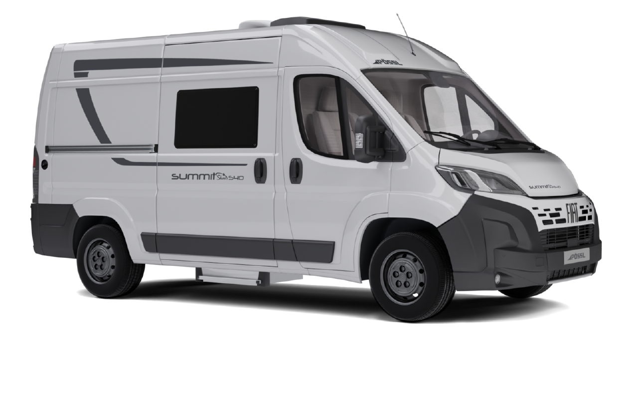 Dankzij een slimme ‘room-in-room’ oplossing met een zwenkwand benut de Summit 540 elke centimeter optimaal. De douche is eenvoudig te realiseren door de zwenkwand. Bovendien is het bed achterin bij het hoofdeinde iets breder dan bij de andere modellen, ongeveer 10 centimeter. De lichte houten interieurkleur straalt rust en ruimte uit. Optioneel kan dit model worden uitgerust met een skyroof boven de voorstoelen, en is er de mogelijkheid om af fabriek een 5e zitplaats te bestellen (deze is uitneembaar wanneer niet in gebruik).