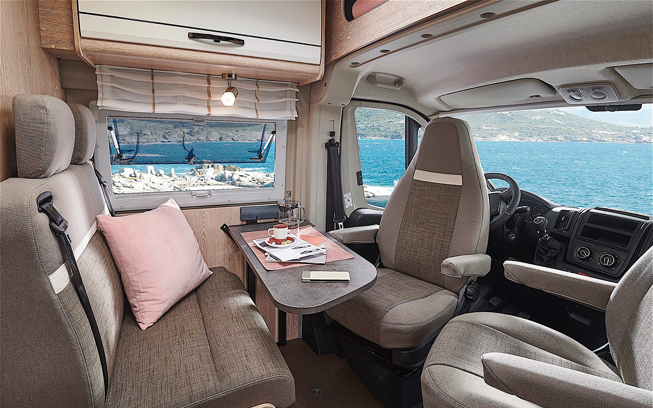 Geef uw Pössl Summit een persoonlijke touch. Kies uit de verschillende houtdecors en combineer deze met een stoffering naar wens. Zo ontstaat een interieur dat niet alleen comfortabel is, maar ook de sfeer ademt die bij uw reizen en uw eigen stijl past.