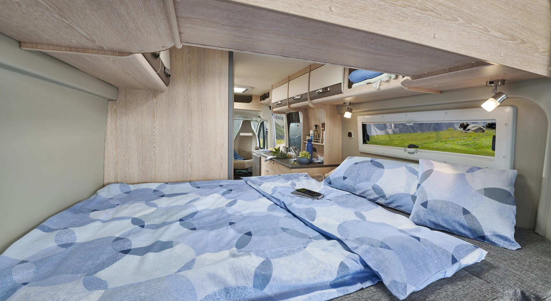 De Summit 600 B beschikt over een royaal tweepersoonsbed van 1.960 × 1.600/1.470 mm – het grootste in zijn klasse. Dankzij de comfortabele matras en de slimme plaatsing achterin geniet u onderweg van hetzelfde slaapcomfort als thuis. Perfect voor zowel korte trips als langere reizen.