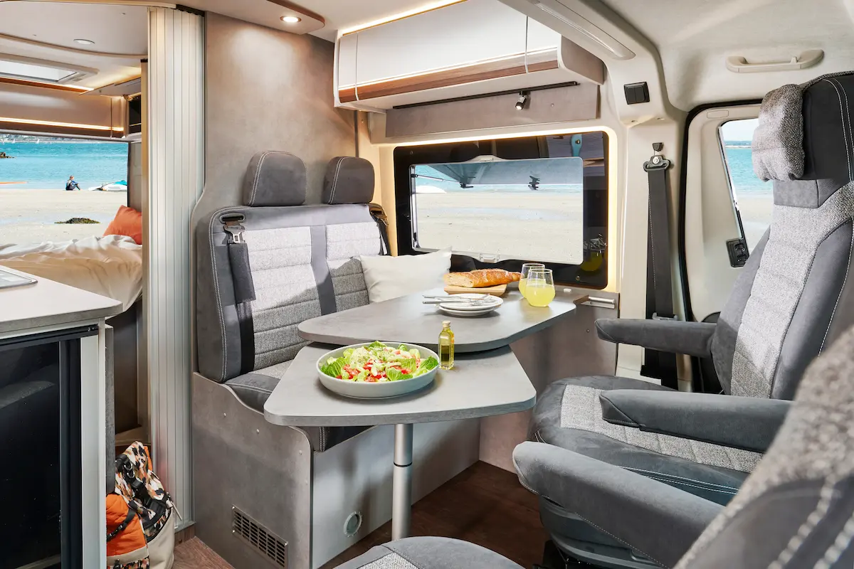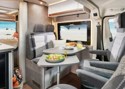 In de Summit Shine-modellen heeft u verschillende mogelijkheden voor de zitgroep, zodat u de indeling volledig naar wens kunt aanpassen. U kunt bijvoorbeeld kiezen voor een individuele stoel, of een combinatie van een bank en stoel, waarmee u plaats biedt aan in totaal 5 personen, ideaal om comfortabel te zitten en te reizen.