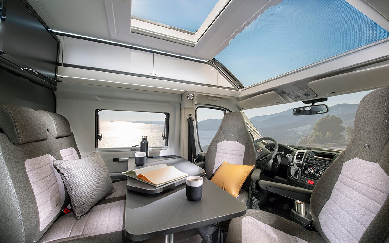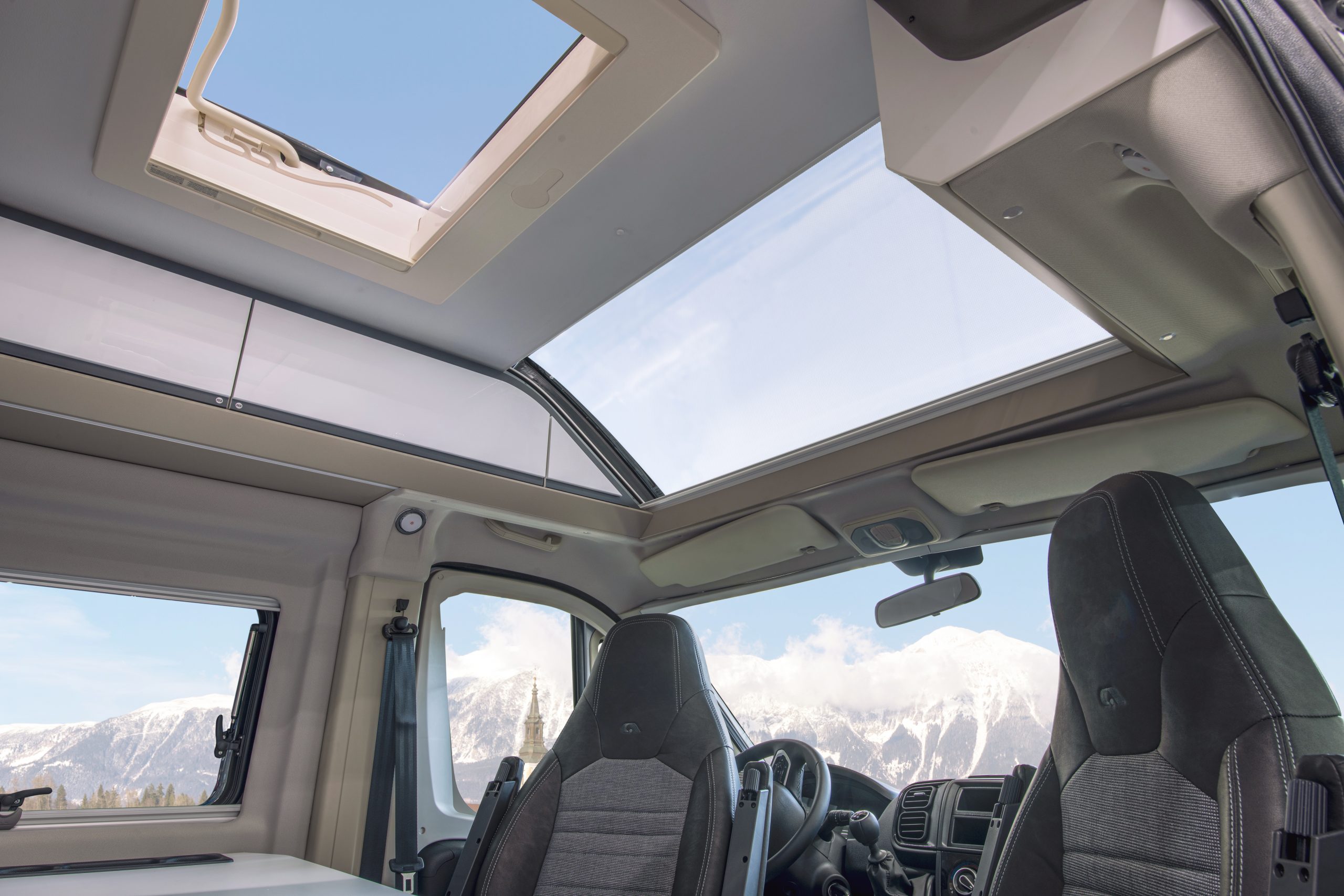 - Adria Exclusief SunRoof met panorama venster. Optioneel XL SunRoof.