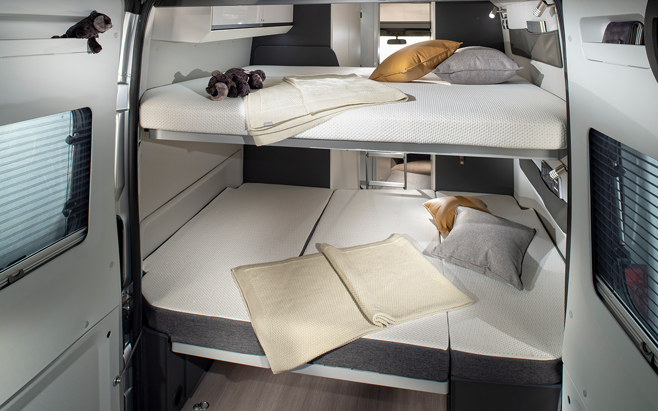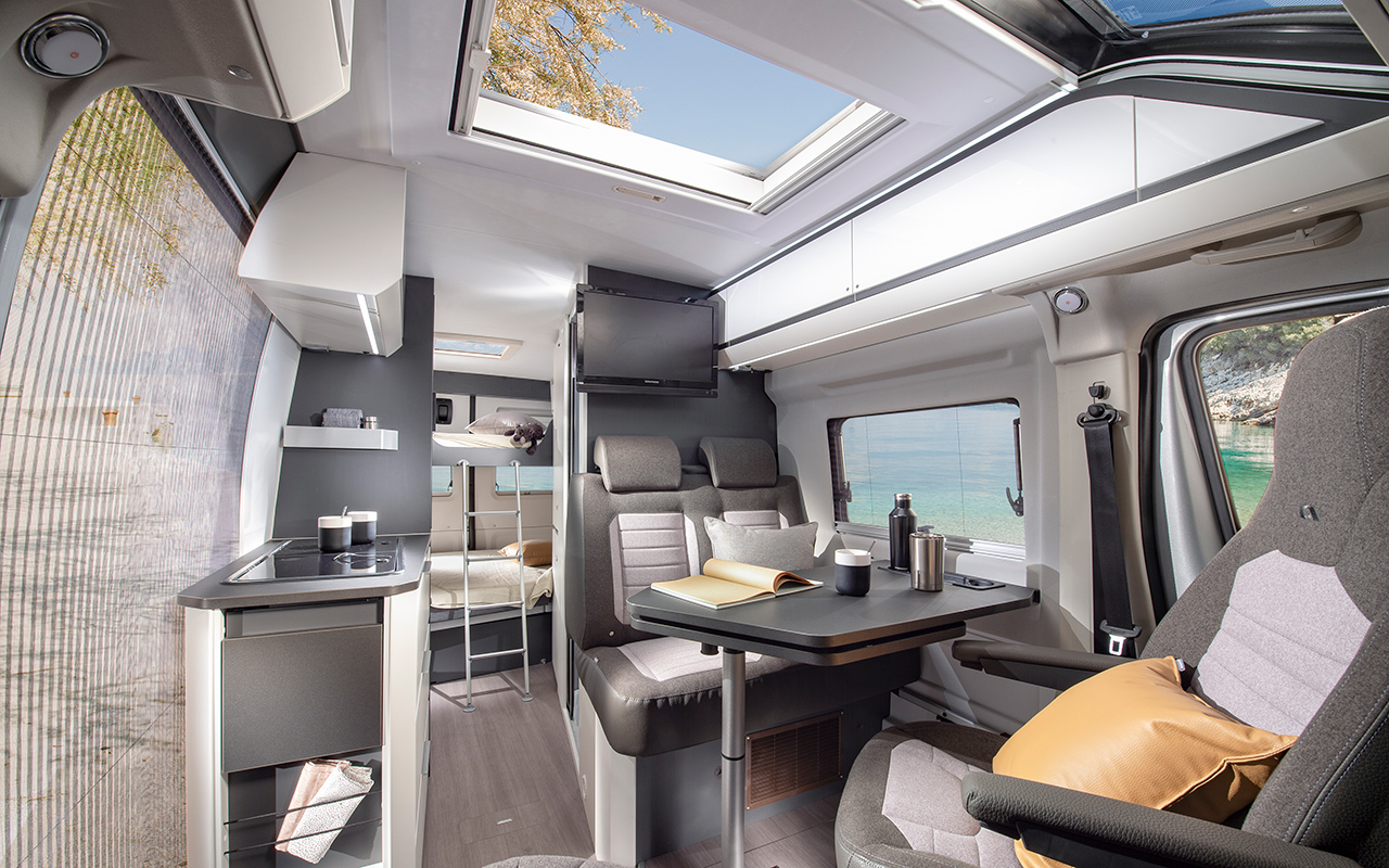 De Twin Supreme 600 SBX is een buscamper met een flexibel interieur dat in meerdere configuraties te gebruiken is. Of u nu een gezellige zitruimte, een praktische werkplek of royale sofa’s wilt, deze camper past zich moeiteloos aan uw wensen aan. Daarnaast biedt de camper een ruime kledingkast, een doordachte keuken, een draaibare wand in de toilet-/doucheruimte en een verplaatsbare tafel voor extra gebruiksgemak.